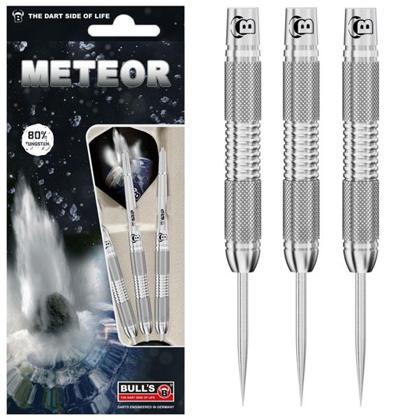 Bull's Meteor dartpijlen hebben per gewicht ieder hun eigen vorm. Bull's Meteor dartpijlen hebben goede grip en zeker wanneer je net start met darten een goede keuze. Deze Bull's Meteor 25 gram 80% tungsten dartpijlen worden geleverd inclusief Bulls flights en shafts.
